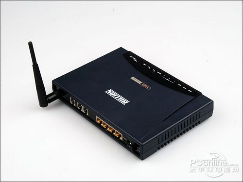 BiPAC 6404VGP外觀看上去與一臺普通的無線路由器沒多大區(qū)別,由于是面向企業(yè)級用戶,所以外型設(shè)計比較沉穩(wěn)。整機(jī)深藍(lán)色,在無線路由器的正上方鮮明的標(biāo)注出它同時還是一臺VoIP語音網(wǎng)關(guān)。