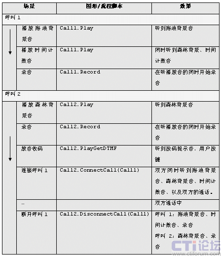 假設(shè):2個呼叫分別作自己的放音和錄音,2個呼叫連接后通話,然后連接取消。