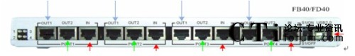 OpenVox的FB40\FD40單機面板接口包括BRI\PRI接入口(IN)、用于連接主服務(wù)器E1接入口(OUT2)和用于連接備用服務(wù)器E1接入口(OUT),USB口用于連接主服務(wù)器,開關(guān)用于切換電路狀態(tài),(可以手動或者通過命令行進(jìn)行切換),如圖所示: