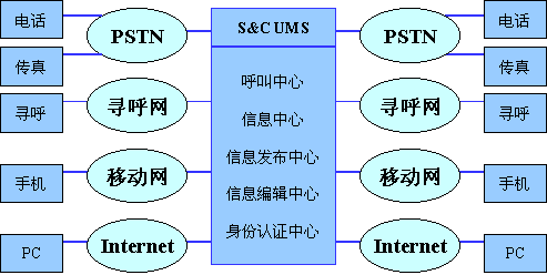 S&C UMS統(tǒng)一消息系統(tǒng)是一套具有標準化和開放性的綜合信息增值服務平臺,由呼叫中心、信息中心、信息發(fā)布中心、信息編輯中心、身份認證中心組成,系統(tǒng)運營商根據(jù)這些中心提供的E-Mail轉(zhuǎn)電話(手機、傳真、尋呼)、電話(手機、傳真、尋呼)轉(zhuǎn)Mail、電話(手機、傳真、尋呼、Mail)留言、個人定制信息到達通知……等功能最終實現(xiàn)為用戶提供全面的個性化信息網(wǎng)絡(luò)商務服務。