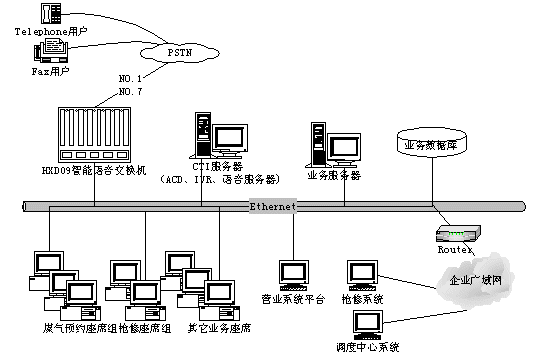 如何為客戶提供"一個電話對外"和"一站式"的服務(wù)便成了最急待解決的課題。隨著近年來CTI技術(shù)的蓬勃發(fā)展,特別是新一代智能語音交換機(jī)的推出,使這一問題迎刃而解。我們能夠方便地建設(shè)一套技術(shù)先進(jìn)、穩(wěn)定高效、價格合理、適合于燃?xì)庑袠I(yè)的呼叫中心。