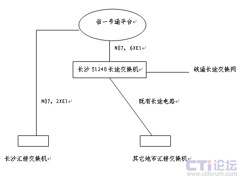 “一號(hào)通”業(yè)務(wù)平臺(tái),相當(dāng)于端局,通過(guò)NO.7鏈路、中繼電路與長(zhǎng)沙鐵通長(zhǎng)途局S1240連接,S1240將所有呼叫“一號(hào)通”號(hào)碼的電話,轉(zhuǎn)向“一號(hào)通”業(yè)務(wù)平臺(tái),“一號(hào)通”的業(yè)務(wù)平臺(tái),將按照用戶事先設(shè)定的電話和方式轉(zhuǎn)接電話。