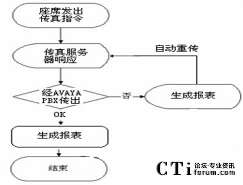 傳真請求是由呼叫中心系統(tǒng)接入,然后再統(tǒng)一分配到座席控制端。進入傳真服務器的具體方式有兩種,一種是從AVAYA PBX直接進入,另一種是從AVAYA