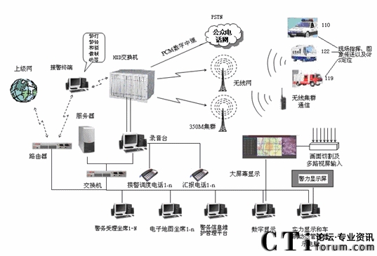 根據(jù)公安部“金盾工程”相關規(guī)定,以HXD09-II智能語音調(diào)度系統(tǒng)為核心的應急聯(lián)動通信系統(tǒng),將公安110、消防119、交警122報警服務臺整合成統(tǒng)一的多功能綜合指揮調(diào)度平臺,加強了不同警種及聯(lián)動單位之間的配合協(xié)作,實現(xiàn)特殊、突發(fā)事件應急反應快速、高效,信息處理及時、全面。