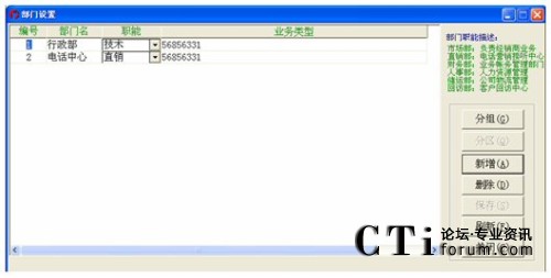 點擊新增來設(shè)置集團(tuán)電話,并點擊保存來保存集團(tuán)電話號,集團(tuán)電話的呼入不算進(jìn)線。要修改某集團(tuán)電話號,選定電話那一欄的對應(yīng)電話號,直接修改就可以了。