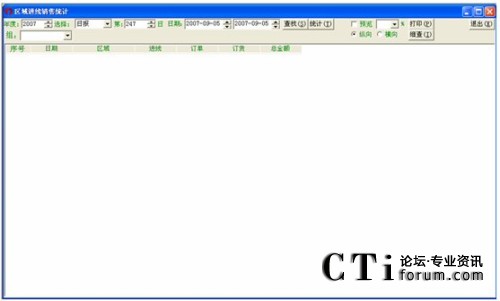 設(shè)定好相應(yīng)的時間,先點擊統(tǒng)計,再點擊查找即可顯示各個區(qū)域的總進(jìn)線、總訂單、總訂貨數(shù)及總金額。