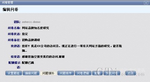 在后臺能夠?qū)柧磉M(jìn)行添加或刪除,對問卷的設(shè)計、表現(xiàn)形式、問題類型等進(jìn)行編輯修改。