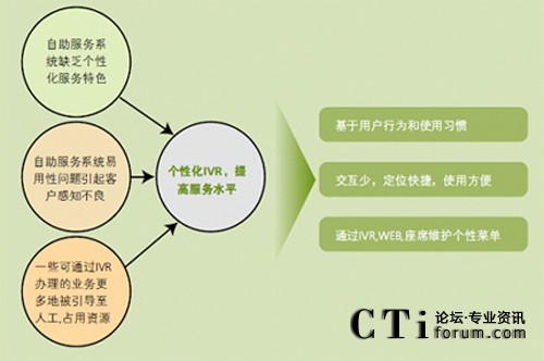最終用戶可以提取常用業(yè)務(wù)定制自己的IVR菜單,減少語音提示和操作步驟,獲取服務(wù)更為準(zhǔn)確快捷,提升了業(yè)務(wù)受理效率,降低了對系統(tǒng)的占用時間。自動業(yè)務(wù)流程隨著最終用戶對受理業(yè)務(wù)需求的變化,運行效率也會隨之變化,系統(tǒng)將對自動業(yè)務(wù)流程的所有節(jié)點進行跟蹤分析,根據(jù)效率最大化原則對業(yè)務(wù)節(jié)點進行排序和調(diào)整。這些細(xì)節(jié)的改進,可以最大限度地降低每次交互占用的時間,提升了客戶滿意度,降低了交互成本。