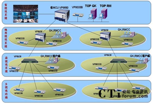 這是目前國內(nèi)最大的政府應(yīng)急視頻會議指揮系統(tǒng),現(xiàn)網(wǎng)可以借鑒的經(jīng)驗很少,華為公司充分意識到該項目的重大意義,投入大量人力物力進行網(wǎng)絡(luò)環(huán)境調(diào)研和客戶需求分析,經(jīng)過眾多專家和工程人員的反復(fù)論證,最終該套系統(tǒng)采取了分布式三級級聯(lián)組網(wǎng)結(jié)構(gòu)和四級分級分權(quán)管理模式,具有強大的備份能力和豐富的功能特性,在省和9個地市分別配置1臺8650MCU和1套管理軟件,在58個縣分別配置1臺8630 MCU,在1205個會議室分別配置1臺8033B終端。