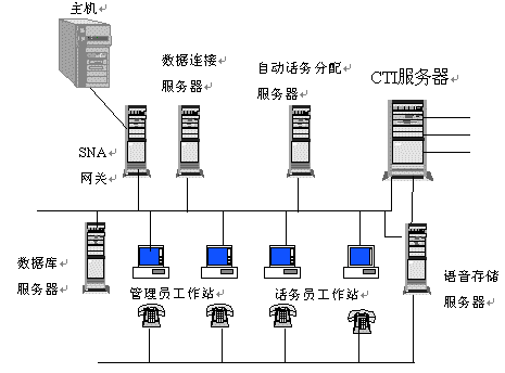 CTI服務(wù)器是電腦與電話信息集成的關(guān)鍵,所有經(jīng)由電話進(jìn)入的信息都會通過它傳到話務(wù)員電腦並自動顯示,以提供進(jìn)一步服務(wù)。