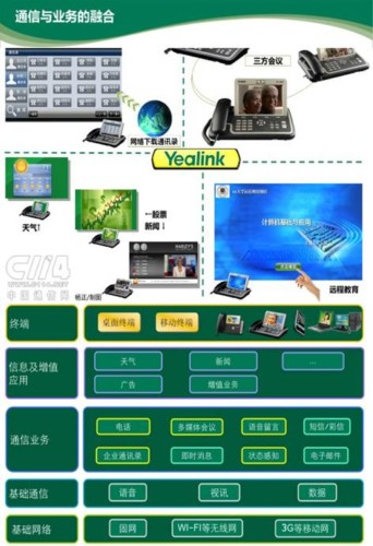 億聯(lián)專注于VoIP領(lǐng)域的發(fā)展,見證了整個終端發(fā)展過程:從由傳統(tǒng)的模擬/數(shù)字電話、IP語音電話、IP視頻話機,到多媒體信息終端階段。每前進一步,都擁有上一步的所有功能,并再延伸出更核心的應用。
