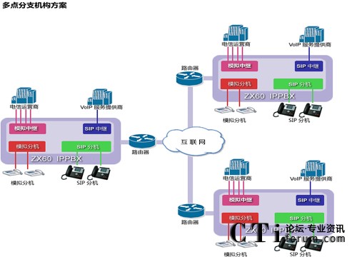 ZX60不僅具有本地電話分機(jī)接口,還運(yùn)行IP電話機(jī)遠(yuǎn)程注冊,無論你若干個辦公室分布在何處,都可以打造成你內(nèi)部免費(fèi)通話的集團(tuán)電話通信系統(tǒng),節(jié)約你的內(nèi)部通信成本,提高辦公效率。