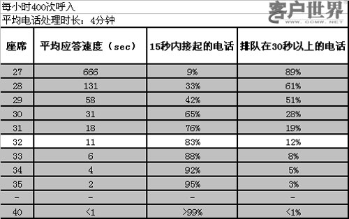 然而,圖3從客戶(hù)感受的角度來(lái)分析問(wèn)題。從客戶(hù)的角度來(lái)看,客戶(hù)聯(lián)絡(luò)中心提供的服務(wù)并沒(méi)有達(dá)到他們期望。對(duì)于每個(gè)來(lái)電者最首要的問(wèn)題是要求在幾秒鐘內(nèi)接通電話(huà)。如果所有的座席都忙碌,這種可能性就會(huì)大大降低了。如果在線座席代表數(shù)量不足,則平均排隊(duì)時(shí)間就會(huì)增加,這將導(dǎo)致客戶(hù)的不滿(mǎn),進(jìn)而將他們的業(yè)務(wù)轉(zhuǎn)向別處。