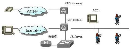 2. 由ACD響應(yīng),并將電話接入IVR(交互語(yǔ)音應(yīng)答系統(tǒng)),詢問(wèn)客戶需要幫助的類型,并將客戶的語(yǔ)音應(yīng)答傳送到SR Server;