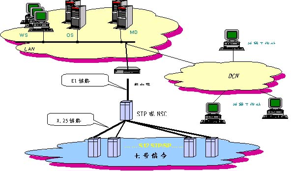 由于N7MS開發(fā)了多種類型的網(wǎng)元通信接口,如X.25,TCP/IP,RS232,加之系統(tǒng)采用分布式的模塊化設(shè)計,因此組網(wǎng)方式非常靈活。 能夠按照信令網(wǎng)絡(luò)和通信網(wǎng)絡(luò)的實(shí)際情況采用不同的組網(wǎng)方案來滿足用戶需要。