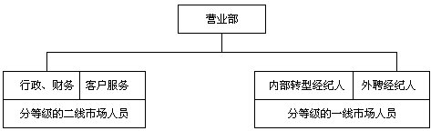 此五種模式建立在營(yíng)業(yè)部基礎(chǔ)上,在券商總部,建議設(shè)立垂直的業(yè)務(wù)管理機(jī)構(gòu),即經(jīng)紀(jì)業(yè)務(wù)總部實(shí)行事業(yè)部制,下設(shè)分工專(zhuān)業(yè)的市場(chǎng)營(yíng)銷(xiāo)部、客戶服務(wù)部、經(jīng)紀(jì)人訓(xùn)練部和綜合管理部等。
