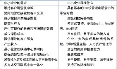 當中小企業(yè)從“非正式”轉(zhuǎn)向“正式”客戶中心操作時,他們需要與大型企業(yè)相同的客戶中心能力。對于這些企業(yè),合適的解決方案必須要解決一個重要的業(yè)務(wù)問題,例如以易于客戶聯(lián)絡(luò)的各種方式交流,使其成為真正的客戶中心。也許更重要的是,實現(xiàn)成本必須處于控制之下且管理良好。中小企業(yè)期望的是功能完善的客戶聯(lián)絡(luò)中心,但是價格必須能夠承擔得起,低花費,低培訓成本,短期內(nèi)即可實現(xiàn)。