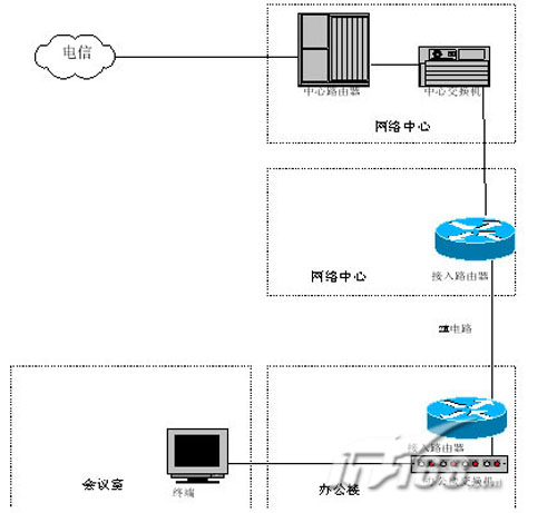 。。2M電路接入是目前電信網(wǎng)絡(luò)常用的一種接入方式。主要是基于目前電信的網(wǎng)絡(luò)環(huán)境,原有的電路交換網(wǎng)絡(luò)十分豐富,大部分地區(qū)都有光纖接入,部分較差地區(qū)也有銅線接入,因此大部分地方可以提供2M電路的接入方式。這樣在兩端分別增加一個接入路由器,根據(jù)電路提供的接口(如E1、V.35等),選擇不同的端口,可以分別接入到各地的局域網(wǎng)內(nèi),實(shí)現(xiàn)視頻會議的接入。路由器類型可選性較多,此類路由器屬于低端邊緣路由器,如CISCO、BINTEC、華為等廠家均有相應(yīng)的產(chǎn)品系列。