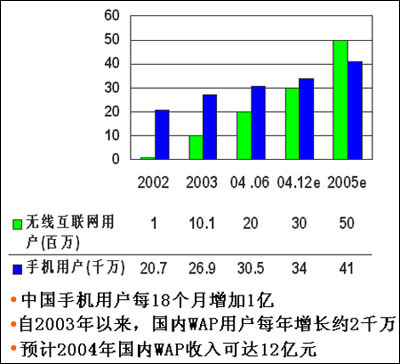 有數(shù)據(jù)顯示,國內(nèi)WAP用戶自2003年來以每年2000萬的速度遞增,預(yù)計(jì)2005年末將有望達(dá)到5000萬,接近國內(nèi)Internet用戶總數(shù)的一半。WAP雖然是一個(gè)充滿了機(jī)會(huì)的市場,但國內(nèi)現(xiàn)有的WAP站點(diǎn)資源很難滿足WAP用戶的需求也是事實(shí)。劉斌認(rèn)為,2005年將是對WAP非常關(guān)鍵的一年,在這一年里,WAP搜索將有望成為WAP平臺(tái)上的“殺手級應(yīng)用”,并最終催熟國內(nèi)各種相關(guān)的WAP應(yīng)用。當(dāng)然,這有一個(gè)前提,那就是中文WAP網(wǎng)絡(luò)資源必須在今年得到極大豐富。
