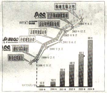 正是憑借著這些優(yōu)勢,即時通信吸引聚集著一些忠誠用戶,并開始搭建網(wǎng)絡(luò)廣告、無線增值等一系列各種潛在的交易平臺?梢韵胂,一個絕佳的聊天窗口同時也是一個方便的交易窗口和暢通的付費入口,即時通信正在摸索一條前所未有的盈利模式。有專家指出,經(jīng)過近5年的曲折前行,即時通信的盈利模式將在2005年逐步明確。以騰訊QQ為例,我們來剖析一下即時通信的盈利模式是如何由模糊走向清晰的。從1999年2月QQ發(fā)布到2000年5月,QQ迅速聚攏了10萬用戶。2000年8月,騰訊公司同廣東移動合作,僅僅用了一年就扭虧為盈,實現(xiàn)了1000萬人民幣的純利潤。
