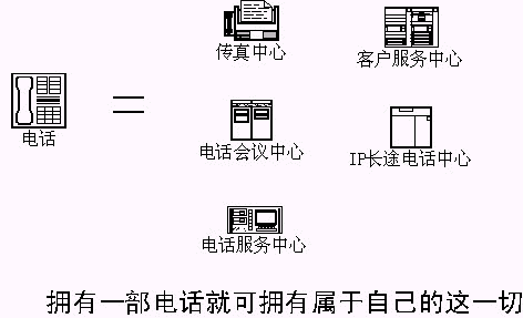 該方法的實(shí)施,可以讓每一個(gè)電話和強(qiáng)大的CTI系統(tǒng)聯(lián)系,一部電話將變成語(yǔ)音系統(tǒng)、傳真系統(tǒng)、電話會(huì)議系統(tǒng)、……。擁有這一切用戶只需要支付呼叫轉(zhuǎn)移的費(fèi)用?梢栽O(shè)想,以后開(kāi)辦公司,只要申請(qǐng)電話,擁有ADSL上網(wǎng)的電腦,用戶在辦公室、在家,打開(kāi)電腦,單擊進(jìn)入自己的語(yǔ)音系統(tǒng)、會(huì)議系統(tǒng),宣傳公司,召開(kāi)會(huì)議,發(fā)送傳真。公司擁有、使用自己的、電信級(jí)的CTI系統(tǒng);所有CTI應(yīng)用系統(tǒng)的開(kāi)發(fā),語(yǔ)音部分完全由電話接入服務(wù)商提供,……。