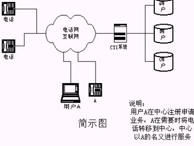 ④用戶也可將服務(wù)電話長(zhǎng)期托管在CTI中心。