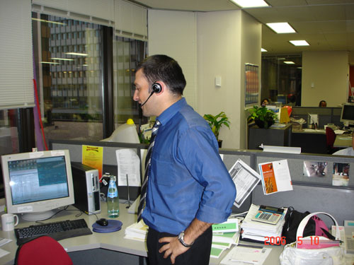 Colonial公司是一家大型的銀行業(yè)務(wù)呼叫中心,座落在悉尼市區(qū)最熱鬧的喬治大街附近,相當(dāng)于我們的上;春B贰_@里的幾百個座席分布在寫字樓的好幾個樓面,所有座席都是使用大北歐的無線耳嘜-GN9120。筆者記得上月去東京參觀HONDA的呼叫中心,那里只有不到三十個一線的座席代表使用無線耳嘜,這里則是所有人都配備了這種先進的無線設(shè)備。筆者看到不少員工站著工作,還有少數(shù)走動辦公,員工在座位上可以輕松轉(zhuǎn)身,隨時調(diào)整姿勢,讓身體處于松弛狀態(tài),這種輕松自如想必電話線那頭的客戶也感同身受。呼叫中心的經(jīng)理Venessa告訴筆者,這里的服務(wù)內(nèi)容比較豐富,對員工的業(yè)務(wù)能力要求很高,所以他們?yōu)閱T工提供一流的工作環(huán)境以減少人員流失率,降低招聘和培訓(xùn)成本,提高客戶滿意度。