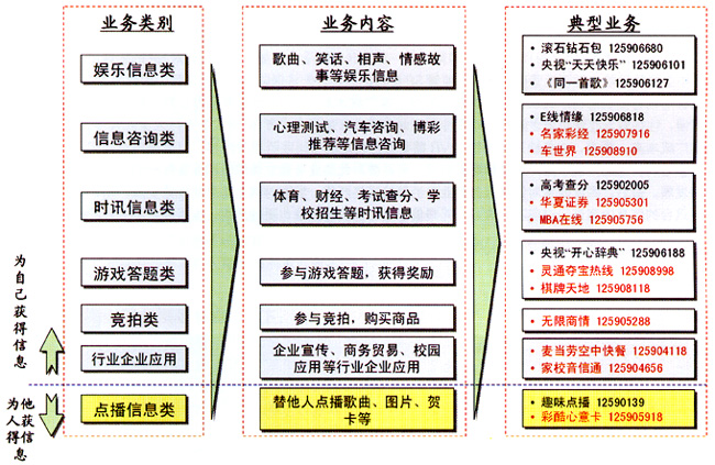- 時訊信息類和信息咨詢類業(yè)務(wù),IVR優(yōu)勢較強,但業(yè)務(wù)范圍較窄,內(nèi)容較少,收入貢獻(xiàn)較低,同時部分業(yè)務(wù)容易受到SP信息源的制約。如果能進(jìn)一步完善服務(wù),滿足用戶需求,業(yè)務(wù)將迅速發(fā)展,應(yīng)該定位于IVR短期發(fā)展的重點業(yè)務(wù)。