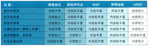 - 游戲答題和競拍類業(yè)務(wù),雖然IVR有一定優(yōu)勢,但業(yè)務(wù)范圍較窄,同時受外界約束較強,應(yīng)該定位于IVR發(fā)展的非重點業(yè)務(wù)。