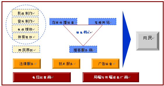 對于互聯(lián)網(wǎng)來講,網(wǎng)絡(luò)視頻代表網(wǎng)絡(luò)內(nèi)容展現(xiàn)形式的變革,而這種變革將帶動(dòng)一個(gè)產(chǎn)業(yè)鏈條的發(fā)展,同時(shí)產(chǎn)業(yè)鏈條各個(gè)環(huán)節(jié)也會反過來制約網(wǎng)絡(luò)視頻的發(fā)展。2006年以前的中國網(wǎng)絡(luò)視頻發(fā)展處于一個(gè)初級階段,聚集網(wǎng)民注意力,形成網(wǎng)民對網(wǎng)絡(luò)視頻內(nèi)容的瀏覽習(xí)慣是這個(gè)階段網(wǎng)絡(luò)視頻發(fā)展的核心。但是因?yàn)樯虡I(yè)模式的不成熟,網(wǎng)絡(luò)視頻盈利能力弱的基本原因,產(chǎn)業(yè)鏈條中的多個(gè)環(huán)節(jié)都成了抑制網(wǎng)絡(luò)視頻發(fā)展的因素。例如:寬頻形式對網(wǎng)絡(luò)資源的要求一方面加大了寬頻內(nèi)容運(yùn)營的成本,另一方面對網(wǎng)民終端的網(wǎng)絡(luò)條件要求也明顯高于以前的網(wǎng)絡(luò)條件,而這些問題要求電信運(yùn)營商既要降低基礎(chǔ)網(wǎng)絡(luò)資源的價(jià)格又要提高網(wǎng)絡(luò)資源的質(zhì)量,這些工作和讓步短時(shí)間內(nèi)電信運(yùn)營商很難完成,寬頻內(nèi)容運(yùn)營商的運(yùn)營成本就保持居高不下而網(wǎng)民的網(wǎng)絡(luò)視頻效果就差強(qiáng)人意了。像這樣充滿著矛盾因素的抑制環(huán)節(jié)在整個(gè)產(chǎn)業(yè)鏈條中還有很多,因此2006年以前的中國網(wǎng)絡(luò)視頻發(fā)展沒有突破產(chǎn)業(yè)束縛進(jìn)入發(fā)展的快車道。