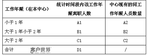 例如:(統(tǒng)計(jì)時(shí)間段內(nèi))在中心工作1年以上的離職人員總數(shù)占中心現(xiàn)有工作滿一年人員總數(shù)的比例