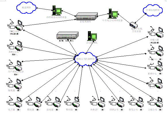 近年來,上海石化陸續(xù)建立了一些視頻會議室,例如,作為中石化集團公司視頻會議系統(tǒng)的分會場之一,可以通過衛(wèi)星線路參與中石化總部召開的電視電話會議;位于上海華敏辦公樓的視頻會議室,可以通過電信專線實現(xiàn)與金山本部、北京總部的三地視頻會議;還有一些小型視頻會議室,可以實現(xiàn)與中石化兄弟單位的視頻連接。但這些系統(tǒng)不僅未能有機地整合起來,而且視頻會議室的范圍和規(guī)模無法滿足公司各部門的應(yīng)用需求。