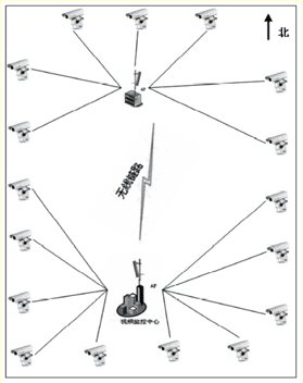 例如,監(jiān)控范圍為一個(gè)長(zhǎng)800米、寬600米的小區(qū),小區(qū)監(jiān)控中心位置在正南位置,正北位置的小區(qū)會(huì)所匯集南邊的視頻圖像,經(jīng)匯集中心AP向監(jiān)控中心傳送。
