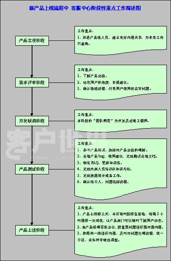 這個(gè)階段,是產(chǎn)品經(jīng)理最繁忙的,對(duì)于客服中心來(lái)講,也是一個(gè)關(guān)鍵階段,在這期間,要求客服中心做到: