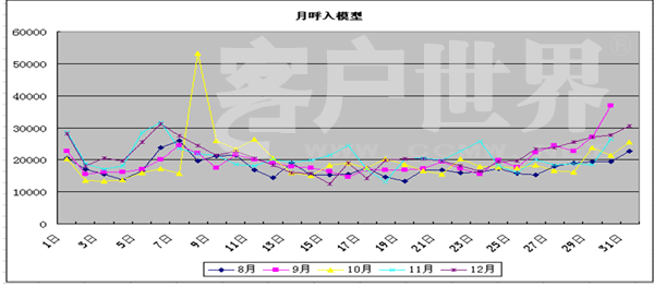 根據(jù)每日呼入的真實號碼數(shù),可得出月呼入話務的基礎(chǔ)模型,如下圖:
