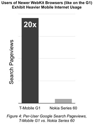還有個例子:T-Mobile G1的用戶使用Google的頻率是諾基亞S60系列用戶的20倍。