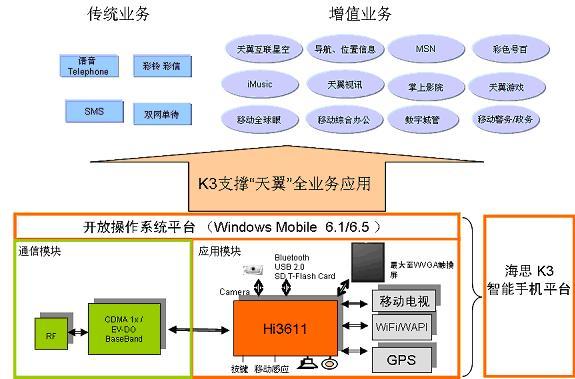 K3方案中集成了GPS、WAPI/WiFi、CMMB(帶CA)的等各種主流應(yīng)用,手機(jī)廠商在選擇時(shí)可以快速的剪裁、組合,形成不同配置的天翼手機(jī)系列,來(lái)滿足不同消費(fèi)群體的需求。