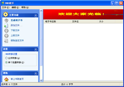 也有不少用戶利用UMD轉(zhuǎn)換工具將電子書轉(zhuǎn)換成UMD格式,但市場上的UMD轉(zhuǎn)換工具都不支持批量轉(zhuǎn)換功能,比如筆者最近想好好復習下英語。想將大量的英語資料制成手機電子書,在上下班坐車的時候?qū)W習,使用普通的轉(zhuǎn)換器就會耗費許多時間。經(jīng)過筆者不懈的上網(wǎng)挖掘,終于發(fā)現(xiàn)了一個好東東。掌上書院推出了首款UMD手機電子書批量制作工具UMD舵手1.0beta,據(jù)介紹,UMD舵手是目前唯一款UMD手機電子書批量制作工具,最多可一次性同時轉(zhuǎn)換300本以上的圖書,為喜愛自己動手制作手機電子書的用戶提供了極大的方便,DIY個屬于自己的手機圖書館不再是夢想了。
