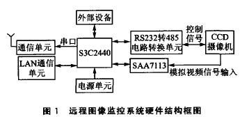 在嵌入式領(lǐng)域,ARM9系列微處理器在高性能和低功耗方面提供了最佳的性能,因此選用ARM9嵌入式處理器S3C2440設(shè)計(jì)實(shí)現(xiàn)了一個(gè)遠(yuǎn)程圖像光線監(jiān)控系統(tǒng)通過(guò)這個(gè)系統(tǒng),可以遠(yuǎn)在千里之外控制一個(gè)攝像機(jī)進(jìn)行圖像采集并回傳。如果這個(gè)攝像機(jī)有一個(gè)485接口的云臺(tái),還可以通過(guò)互聯(lián)網(wǎng)遠(yuǎn)程控制攝像機(jī)的取景角度、鏡頭拉伸、聚焦等功能.