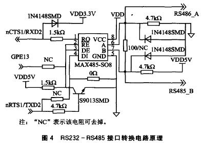圖4中RS485的數(shù)據(jù)流方向由GPE13口的電平進(jìn)行控制。