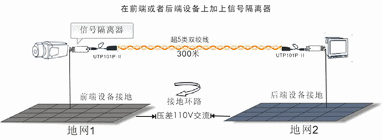 第二種方案是使監(jiān)控傳輸上的設(shè)備各點的相對地的電勢相同,一種方法是用一根導線把前端設(shè)備與后端設(shè)備的地連起來,但導線本身也存在電阻,效果并不是非常好,并且還需另外布線,增加了工程的復雜性;第二種方法是采用屏蔽的雙絞線,可是必然會對視頻信號有損耗,從而縮短傳輸距離。