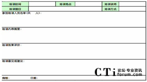 用于對(duì)培訓(xùn)實(shí)施過(guò)程及結(jié)果的記錄,包括培訓(xùn)考勤記錄及培訓(xùn)效果評(píng)估部分。