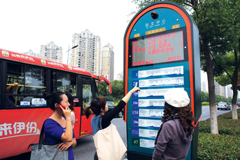 智能公交系統(tǒng)運(yùn)行以后,乘坐公交車(chē)的市民可以通過(guò)公交電子站牌、“96196”交通服務(wù)熱線電話、移動(dòng)掌上公交短信查詢、蘇州交通縱橫網(wǎng)站和蘇州移動(dòng)生活網(wǎng)等多種方式實(shí)時(shí)查詢車(chē)輛到站信息。