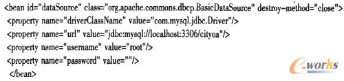 與本地開發(fā)不同的是云計算平臺下,由于服務器采用虛擬主機技術,無法像本地服務器那樣配置數(shù)據(jù)庫連接池,因此需要CRM系統(tǒng)自己管理數(shù)據(jù)庫連接池。本系統(tǒng)使用Spring管理下的數(shù)據(jù)庫連接池,運用Apache開源DBCP框架配置連接池代碼如下: