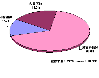 盡管2.5G的概念在各種媒體上被炒作得沸沸揚(yáng)揚(yáng),然而在本次調(diào)查中卻發(fā)現(xiàn),大部分被訪(fǎng)者對(duì)2.5G仍然十分陌生。有將近七成的被訪(fǎng)者(68.0%)表示從來(lái)沒(méi)有聽(tīng)說(shuō)過(guò)2.5G通訊技術(shù)(業(yè)務(wù))。而在知道者中也有一半以上的人表示印象不深。2.5G這個(gè)炙手可熱的概念在用戶(hù)這里得到的卻是冷遇。