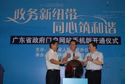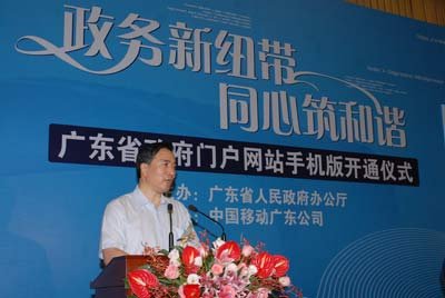 2009年8月7日,廣東省政府在廣州舉行省政府門戶網(wǎng)站手機(jī)版開通儀式。省政府秘書長徐尚武、中國移動(dòng)廣東公司總經(jīng)理徐龍?jiān)陂_通儀式上致辭。