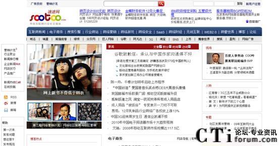 CTI論壇(ctiforum)1月11日消息(記者 張塵):近日,記者獲悉,原天極傳媒集團(tuán)副總裁、資深媒體人士范鋒正式宣布創(chuàng)業(yè),同時(shí),其所創(chuàng)辦的Web2.0媒體速途網(wǎng)(www.sootoo.com)于今日正式上線。在經(jīng)過近9個(gè)月的低調(diào)測(cè)試之后,定位于“中國互聯(lián)網(wǎng)行業(yè)媒體和在線服務(wù)平臺(tái)”的速途網(wǎng)今天以全新版式亮相。