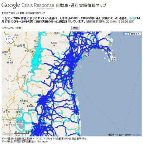“探針”是汽車物聯(lián)網(wǎng)的重要技術(shù)之一,此前本田已經(jīng)提供了稱為“網(wǎng)上導(dǎo)航”的獨(dú)自服務(wù)。日本ITS協(xié)會希望推動探針技術(shù)的通用化,但是廠商之間存在競爭關(guān)系,難以協(xié)同一致。本次,在通行圖上,本田、先鋒、豐田、日產(chǎn)汽車都提供了信息,實(shí)現(xiàn)了共享信息,對救災(zāi)物資運(yùn)輸?shù)穆窙r信息提供了有益參考,“地震時方顯汽車物聯(lián)網(wǎng)的價值”(八木浩一)。