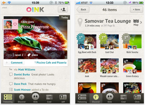 與Foursquare不同的是,Oink不是讓用戶為整個(gè)店評分,而是具體到店里的每一樣?xùn)|西。以比薩餅為例,附近有那些店提供,哪家的得分更高,哪位用戶在這方面的推薦更為可信,您都可以一目了然地查到。