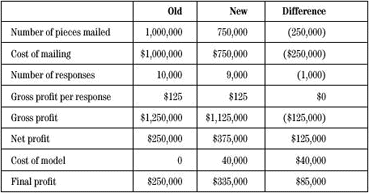 請注意,郵寄的純利潤增加了$125,000,甚至你扣除由于數(shù)據(jù)采集而產(chǎn)生的軟件、硬件即人力資源方面的$40,000,純利潤還增加了$85,000。建模的投入轉化成了200%的收益,這遠遠超過了BB&CC對這一項目的ROI要求。